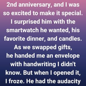 I spent days creating the perfect anniversary for my husband—his favorite dinner, candles, soft music, and the smartwatch he’d been wanting for months. I wanted everything to…