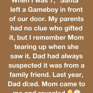 When I was 7, “Santa” left a Gameboy in front of our door. My parents had no clue who gifted it, but I remember Mom tearing up…