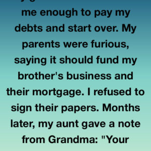 I read my grandmother’s note about fifty times the night my aunt handed it to me. The handwriting shook, but the words were sharp: “Your parents will…