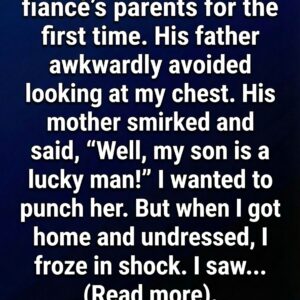 I was meeting my fiancé’s parents for the first time. His father awkwardly avoided looking at my chest. His mother smirked and said, “Well, my son is…