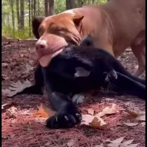 A tense and shocking moment has been captured in a forested area, where a black panther appears to be overpowered by a large, muscular dog. In the…