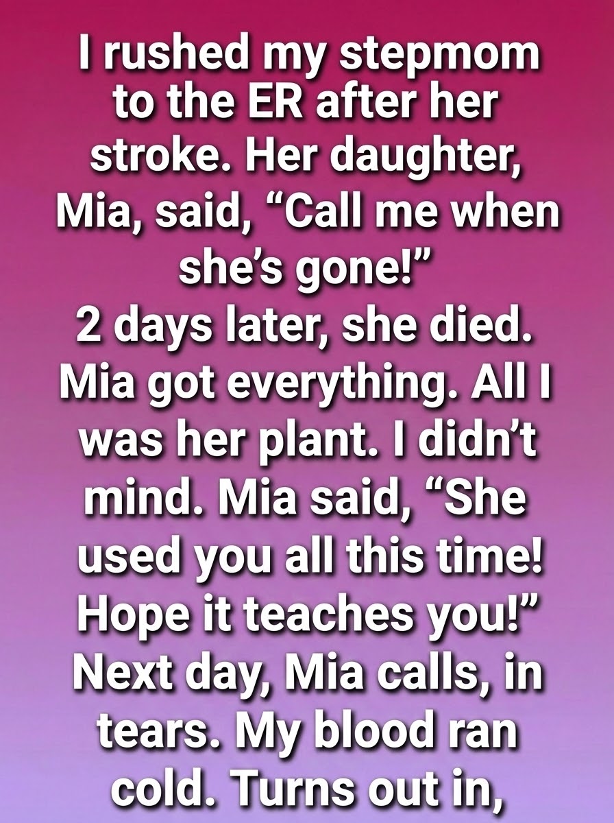 The next morning, my phone rang. Lina’s voice cracked through the speaker. “The lawyer found another note,” she sobbed. “She left me everything because she thought I’d need security, but she left you the only thing that mattered to her. I didn’t understand.” There was silence between us, heavy but honest. I looked at the jade plant on the windowsill, its leaves catching sunlight. “Maybe we both misunderstood her,” I said gently. Lina exhaled, as if releasing years of resentment. We agreed to meet, not to divide belongings, but to share memories. And as the plant stood quietly between us, I realized that sometimes what looks like being used is actually being trusted with something far more precious than wealth.