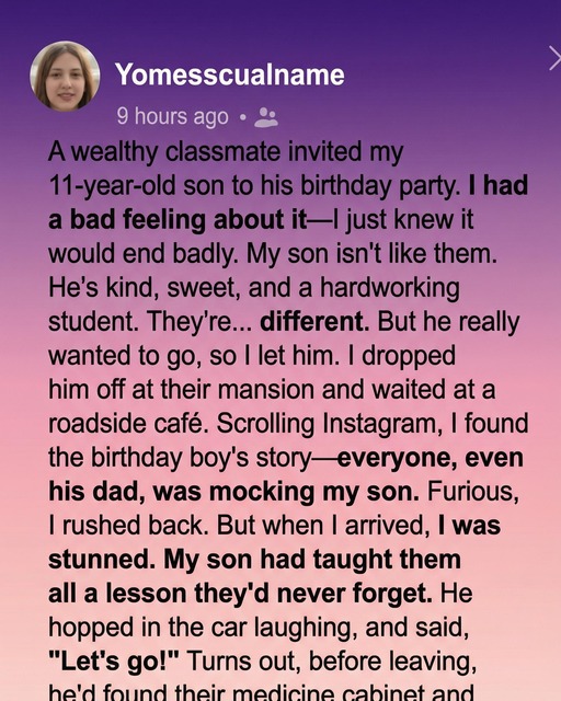 There, in a short video clip, a group of children and even a few adults were laughing at my son, imitating his quiet voice and making light of his simple clothes. Anger rose quickly. I left my cup untouched, hurried to the car, and sped back toward the mansion, imagining the embarrassment my child might be feeling. Every red light felt too long, every second unbearable. I rehearsed what I would say when I arrived, determined to defend him from any further unkindness. But when I stepped into the grand entrance hall, the scene before me froze my breath. My son stood in the center of the room, calm and composed, surrounded by children who were suddenly silent and attentive. Instead of looking hurt, he was smiling.