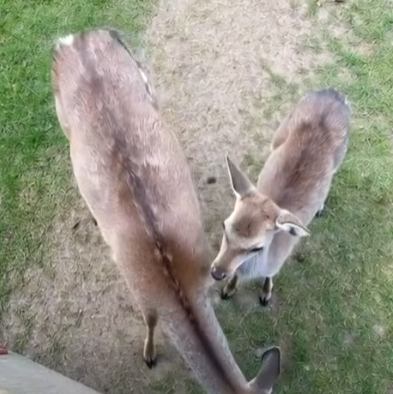 They appeared without warning, stepping out from the treeline while I tossed hay near the fence. Calm and unafraid, the larger deer stayed close, alert and steady. The smaller one stared at me with wide, curious eyes.