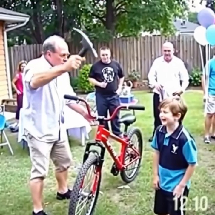 As the footage played, I braced myself, yet nothing could have prepared me for the unfolding scene. My father walked over to the bike, his face a mask of anger. Trevor stood nearby, his small hands clenched at his sides, a look of fear etched across his face. He pleaded with his grandfather, tears streaming down his cheeks. But my father ignored the cries of a child and lifted the bike high before smashing it onto the ground repeatedly, with a resolve that seemed chillingly deliberate. It wasn’t about teaching a lesson; it was about control.My mother stood by, arms folded, a nod of approval signaling her support. She looked on as if this cruel scene was simply a normal family affair. The realization hit me like a sledgehammer—this was more than a lesson. This was an abuse of power disguised as discipline, and it was a cycle I refused to perpetuate.