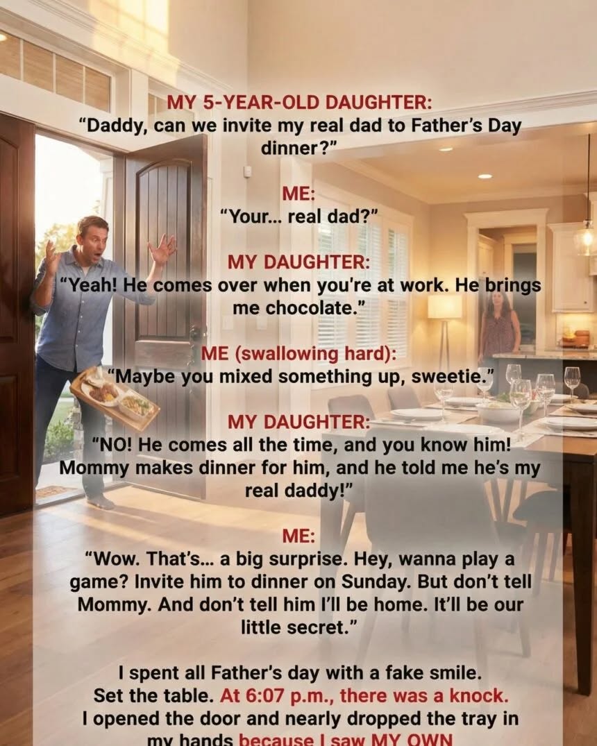 I spent Father’s Day convinced my daughter had another dad. My hands shook setting the table, every sound from the street a threat. Then, at 6:07 p.m., a knock shattered the silenceThe man at the door wasn’t a stranger stealing my place. It was my brother, standing there with chocolates and a board game, suddenly pulled into a storm he never saw coming. As my daughter shouted, “My real dad is here!” the air turned electric, every unspoken fear I’d carried crashing into that one impossible sentence.