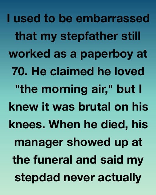 sudden and quiet, halfway through deliveries, one hand still resting on the papers. His funeral was small and unassuming, until a man in a crisp suit approached me afterward and said something that cracked my understanding of Patrick in half. My stepfather, he explained,