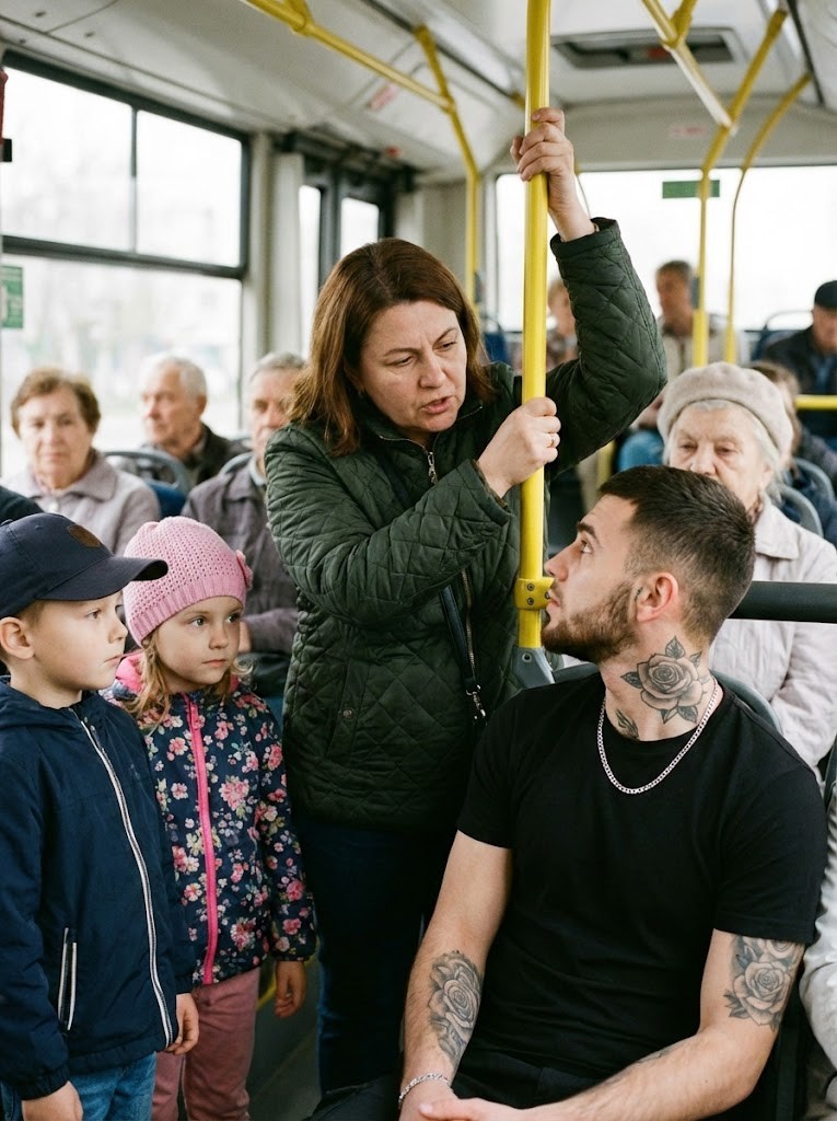 to nod in agreement and whispered about how the youth of today lacked basic manners. The mother even mocked his tattoos and questioned if he was healthy enough to stand. She insisted that her status as a mother meant she deserved to sit regardless of his own physical situation or worth.