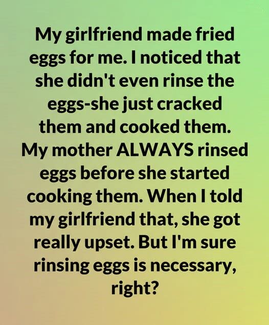 As she cracked eggs into the pan, Evan wandered in, half-asleep, watching her. “Shouldn’t you rinse them first?” he asked casually. “My mom always did.” To him, it was nothing—just a memory from his childhood kitchen.