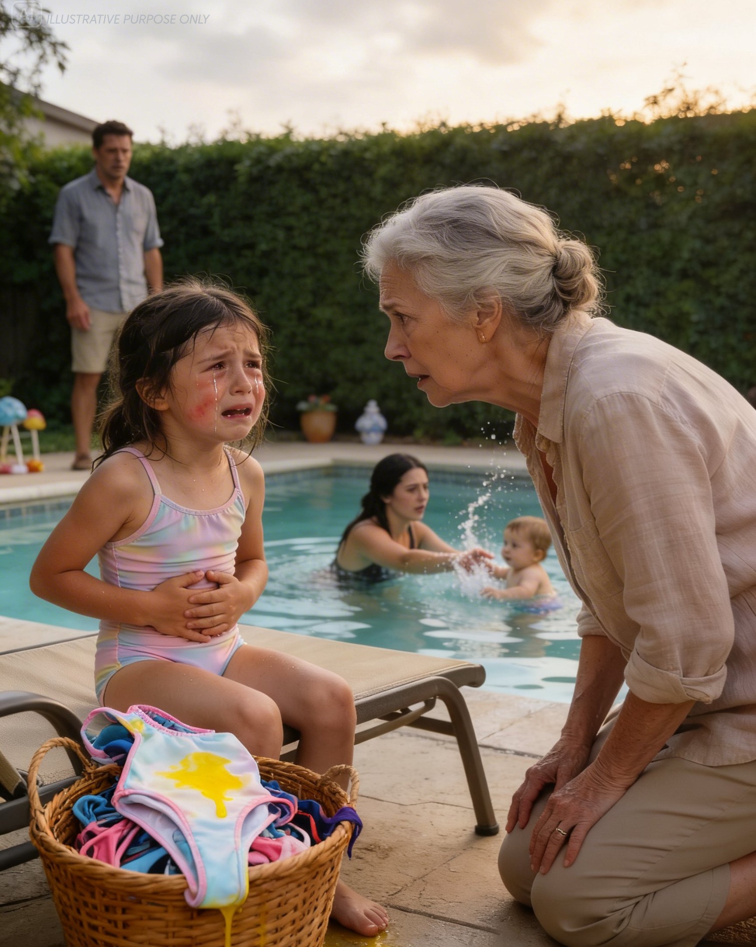 Lily sat alone near the pool while the others laughed in the water. Her small legs swung back and forth, disconnected from the joy only feet away.