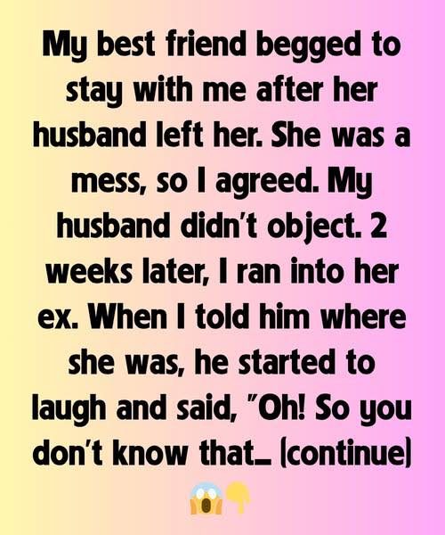 My best friend begged to stay with me after her husband left her. She was heartbroken, and I couldn’t say no. She moved into our guest room, and my husband didn’t object. For the first two weeks, everything seemed normal. She kept mostly to herself, trying to heal, and I did my best to make her feel safe and supported.