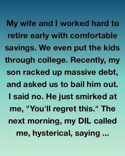 After retiring comfortably, my wife Marta and I refused to bail out our 32-year-old son when he racked up massive debt. He smirked and said we’d regret it—then vanished overnight. Days later, we learned he had drained joint accounts, taken loans in his wife Laura’s name, and fled to Thailand to live what he called a “free” life. While Marta grieved, Laura filed for divorce and began rebuilding. I wrestled with guilt but held onto one truth: love without boundaries isn’t love.