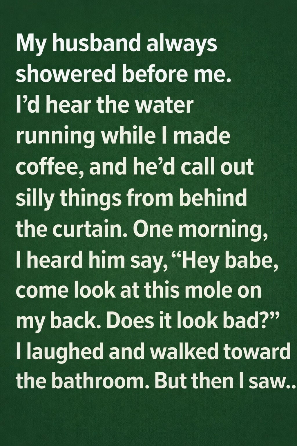 Every morning followed a comforting routine—he showered while I made coffee, joking from behind the curtain like a radio host. So when he called me in to look at a mole on his back, I assumed it was another playful interruption.