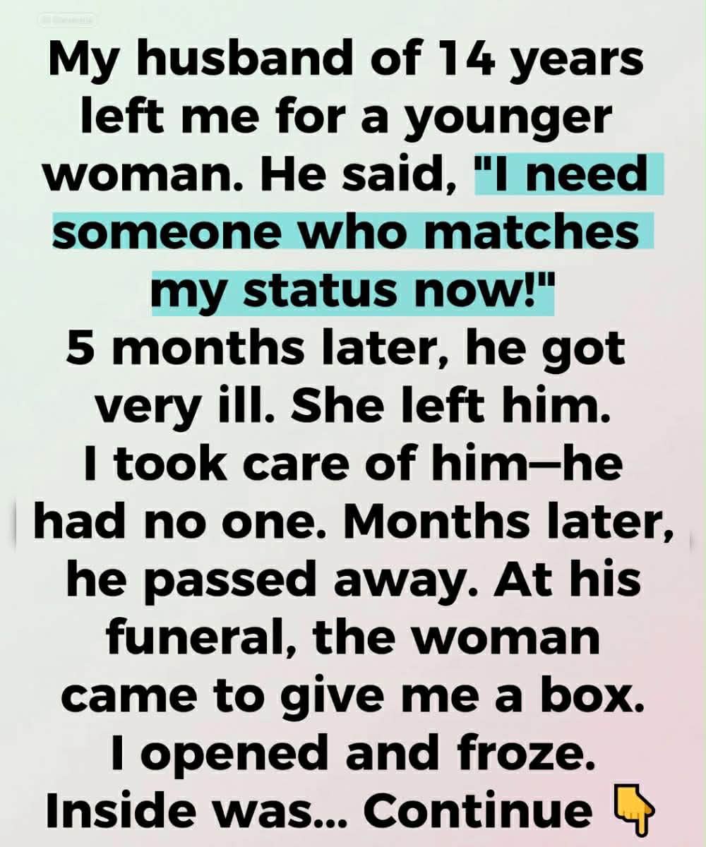 After fourteen years of marriage, my husband left quietly, saying he had “outgrown” our life and needed someone who fit his ambitions. There were no dramatic fights—just a slow change that ended with him walking away for someone younger and more exciting. In a single moment, years of shared memories felt dismissed.