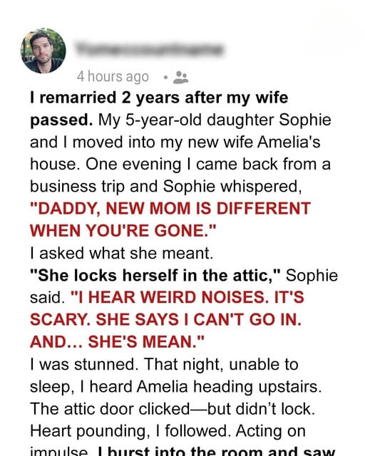 When I married Sarah, I believed her kindness and patience would help us build something steady and loving. But after returning from a business trip shortly after our wedding, I sensed something had shifted. Instead of the usual excitement, Emma greeted me with hesitation and said softly, “Daddy, new mom is different when you’re gone.” Her words stopped me. I realized she wasn’t simply adjusting to a new parental figure—she was still grieving, trying to understand what this change meant for her and for the memory of her mother.