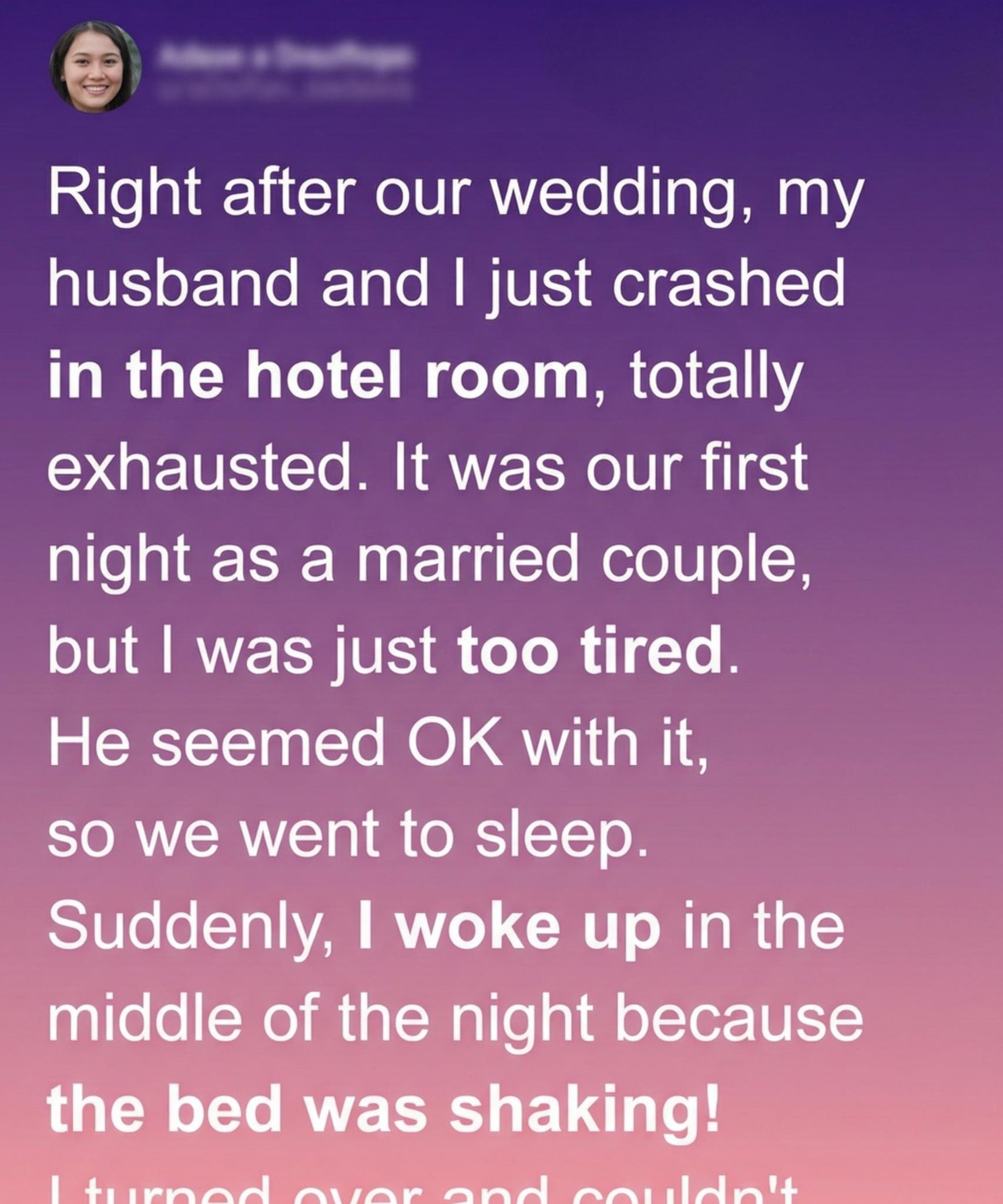 After a long, joy-filled wedding day, my husband and I finally collapsed into our quiet hotel room, exhausted and still half-dressed. The silence felt sacred after hours of music and celebration. Our romantic first night didn’t unfold the way we imagined—we fell asleep almost instantly.