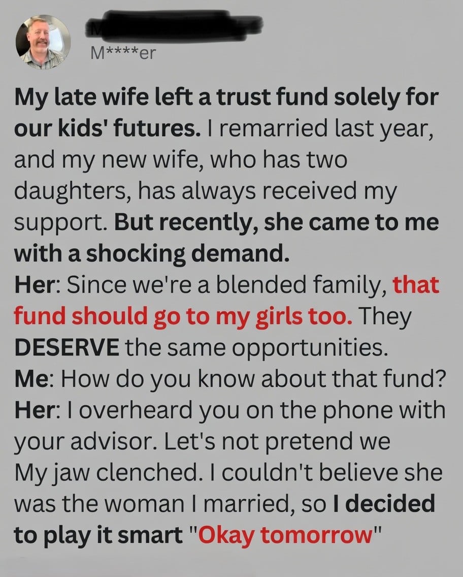 Gaby frowned. “We’re one family now. My girls deserve the same opportunities.” I stayed calm but firm. “We’ll create a fund for your daughters too, but it has to come from our joint income. Edith’s savings are not to be touched.” The next day, I made a loud call to my financial advisor so Gaby could hear: “Yes, I’d like to set up a new account for my stepdaughters. We’ll contribute to it together from our income.” Gaby looked shocked, realizing she couldn’t access Edith’s money.