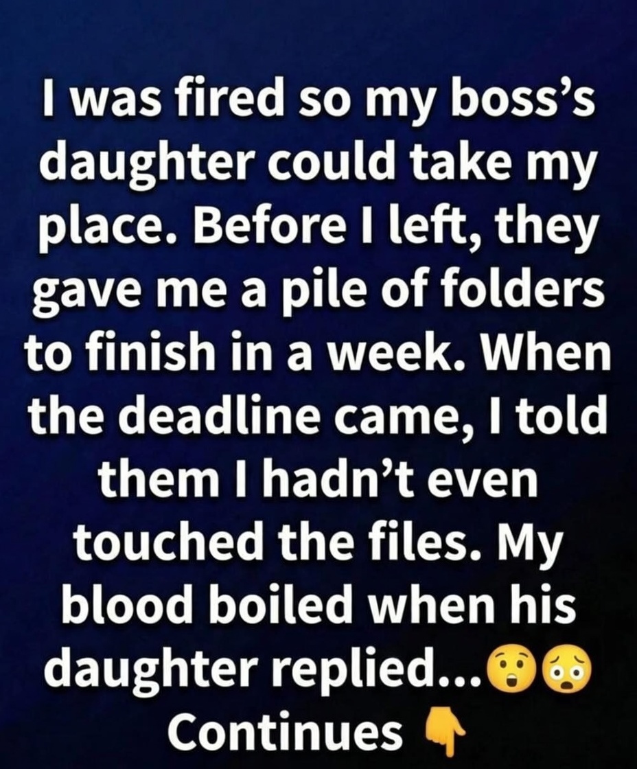 When Friday arrived, the reports were still untouched. I returned to the office, placed the folders on the desk, and calmly told my manager I hadn’t completed them because the new hire should start with her full responsibilities. To my surprise, his daughter simply said she had already finished the work herself. With that, I wished them well and walked away feeling lighter than I had all week. Not long after, I started a new job where my experience was genuinely valued, and I realized that losing that position hadn’t been the end of my story—it had been the quiet beginning of something better. READ MORE BELOW