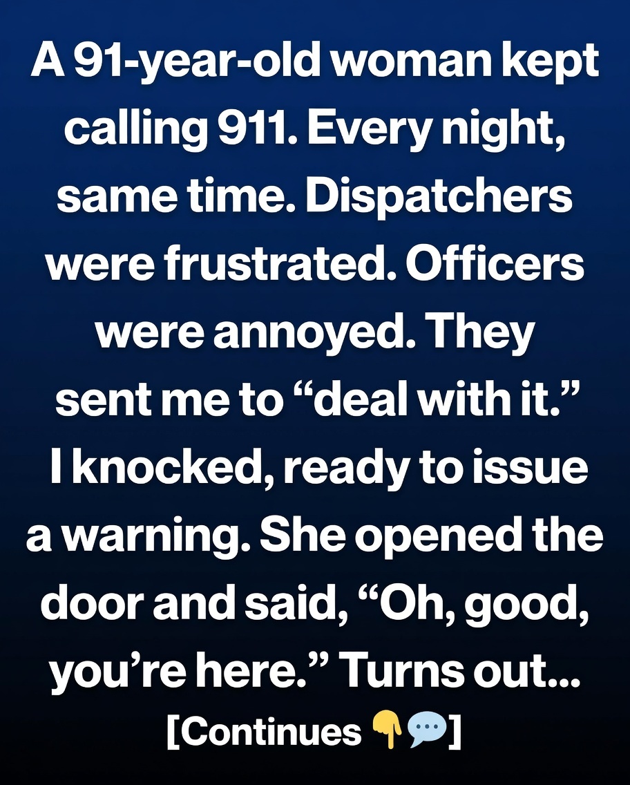 Every evening at precisely 9:03 p.m., the emergency dispatch center received the same call. The report always listed Margaret Lawson, age 91, and the complaint section remained blank. When operators answered, they asked the usual question: “Ma’am, what seems to be the emergency?” After a short pause, a soft, polite voice replied, “Oh… I just thought someone should check on me.” There were no signs of danger or medical issues—just a quiet home at the edge of town and a caller seeking reassurance that someone was there. Initially, dispatchers responded patiently, assuming loneliness or confusion might be at play.