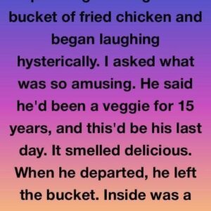 A passenger brought in a bucket of fried chicken and began laughing hysterically. I asked what was so amusing. He said he’d been a veggie for 15…