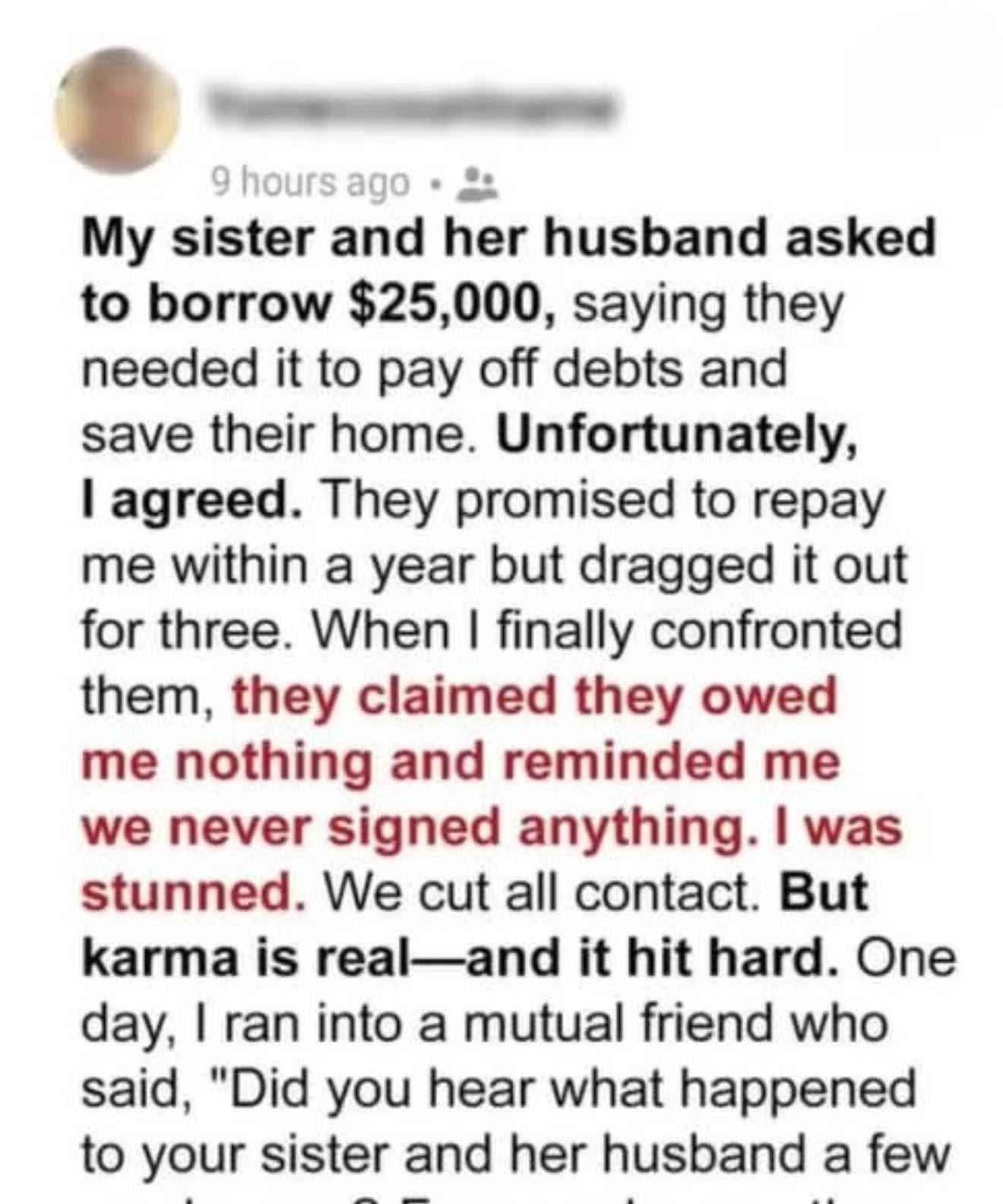 We signed a basic agreement, and I trusted they’d pay me back. They never did. As time passed, I watched them flaunt vacations, new purchases, and a flashy lifestyle on social media—while giving me nothing but excuses.