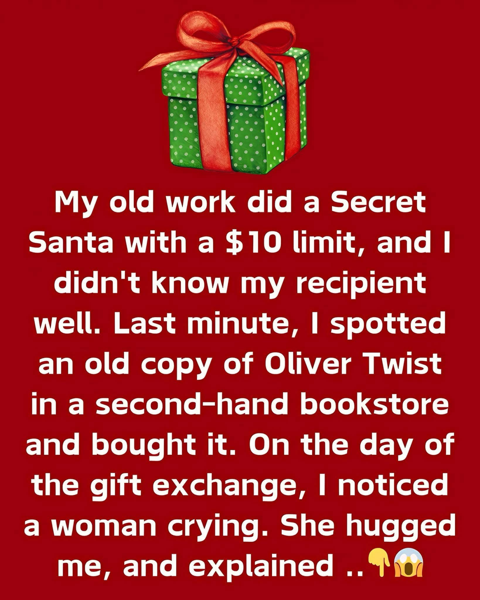 “My old work did a Secret Santa with a $10 limit, and I didn’t know my recipient well. Last minute, I spotted an old copy of Oliver Twist in a second-hand bookstore for $10 and bought it.
