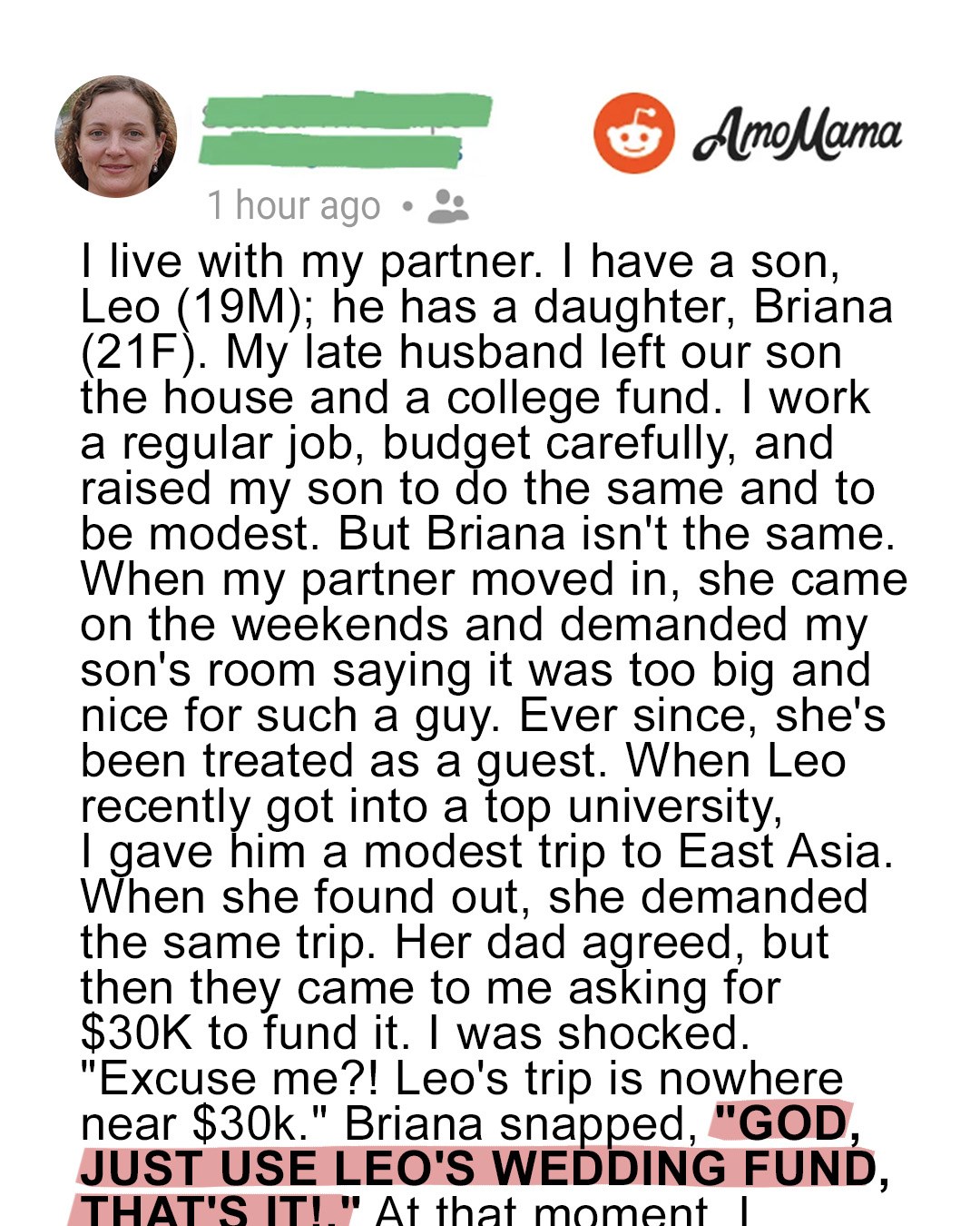 Leo, 19, has worked tirelessly, juggling school and jobs, saving every penny for college. His late father left a small wedding fund I continued building over the years. I used some of it—my own money—to surprise Leo with a trip to East Asia. It wasn’t extravagant, just something he’d earned. But when Briana found out, she demanded $30,000 for a luxury Europe trip. “Just use his wedding fund,” she said, like it was hers to claim.