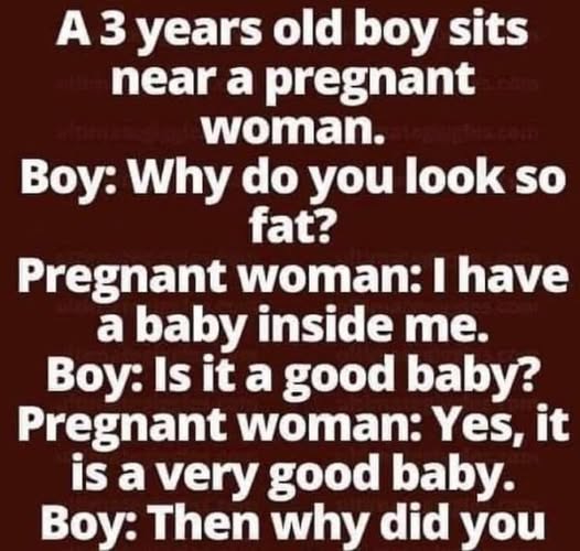 Humor is often born from the pure, unfiltered lens of childhood—a time when words are taken at face value, and the world is a place of endless wonder, confusion, and unexpected punchlines. One of my favorite stories that captures the hilarity of childhood misinterpretation involves a simple encounter between a three-year-old boy and a pregnant woman.