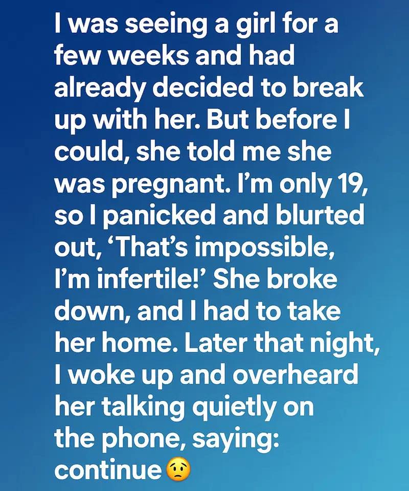 In my panic, I blurted out, “That’s impossible — I can’t have children.”