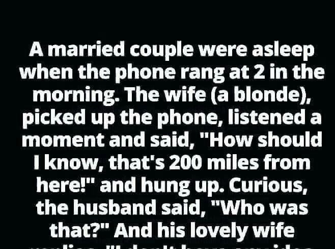 A married couple were asleep when the phone rang at 2 in the morning. The wife (a blonde) picked up the phone, listened for a moment, and said,