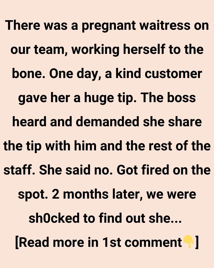 There was a pregnant waitress on our team, working herself to the bone. One day, a kind customer gave her a huge tip. The boss heard and demanded she share the tip with him and the rest of the staff. She said no. Got fired on the spot.