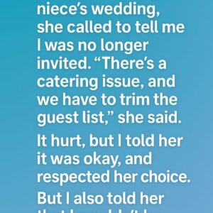 A day before my niece’s wedding, she called to tell me I was no longer invited. “There’s a catering issue, and we have to trim the guest…