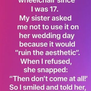 My Sister Said My Wheelchair Would Ruin Her Wedding — What Happened Next Changed Everything