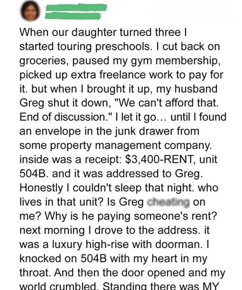 Confused and anxious, I drove to the building the next day, only to discover the truth—Greg had been paying for his mother’s upscale apartment in secret.