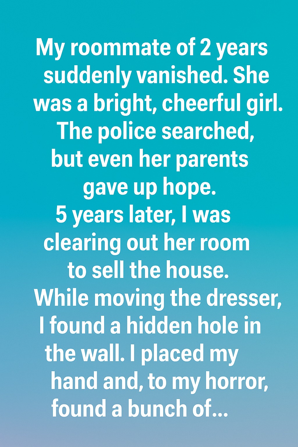 My roommate of 2 years suddenly vanished. She was a bright, cheerful girl. The police searched, but even her parents gave up hope. Five years later, I was clearing out her room to sell the house. While moving the dresser, I found a hidden hole in the wall. I placed my hand in and, to my shock, found a bunch of old, folded letters tied with a faded ribbon. My heart raced as I sat on the floor and carefully untied the ribbon. The first letter was in Sarah’s handwriting shaky but familiar.