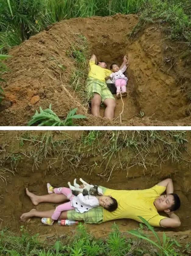 The story of a father digging a grave for his 2-year-old daughter brings tears to the online community. Full story in 1st comment
