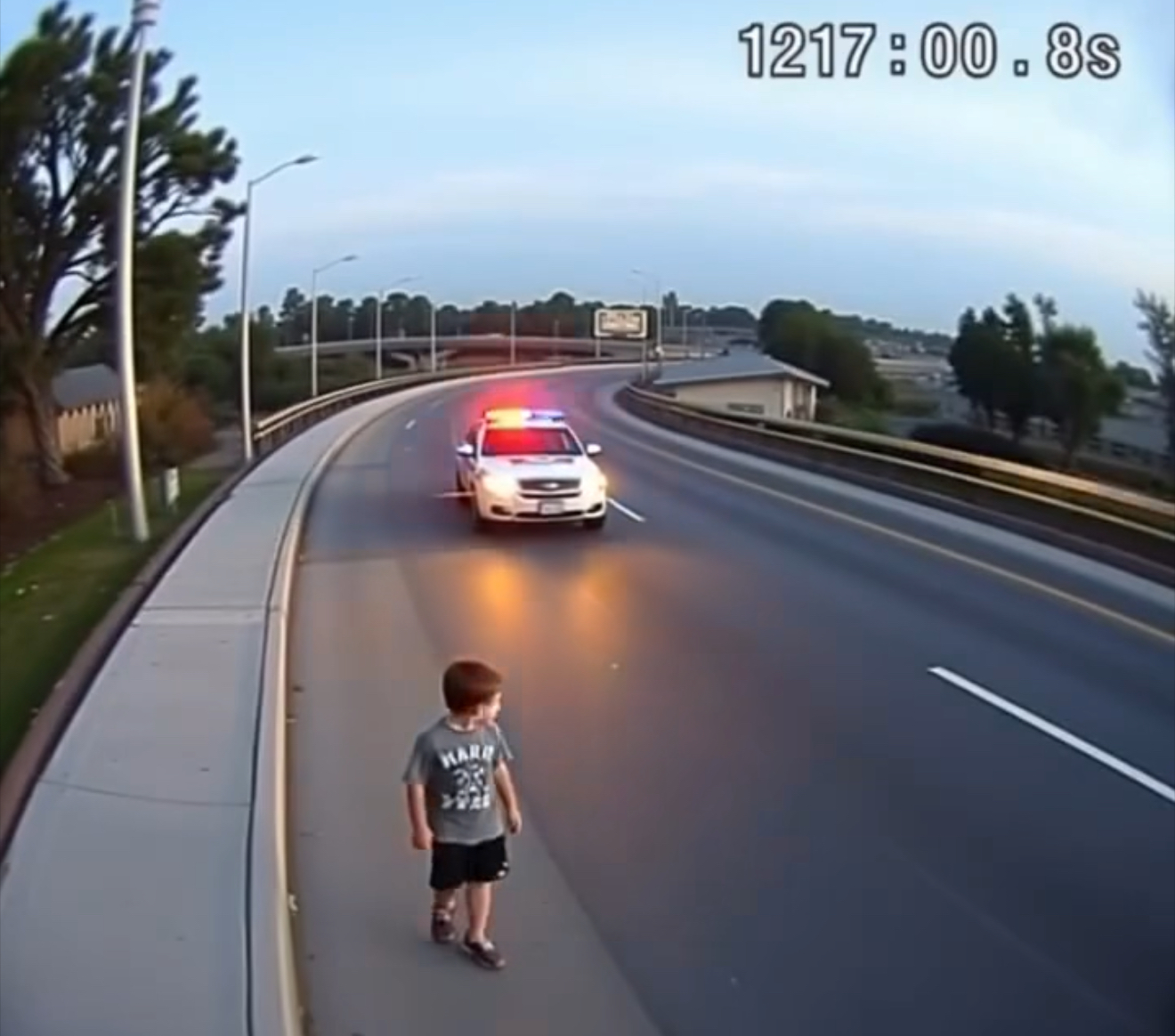 A police officer spotted a trembling little boy wandering alone.