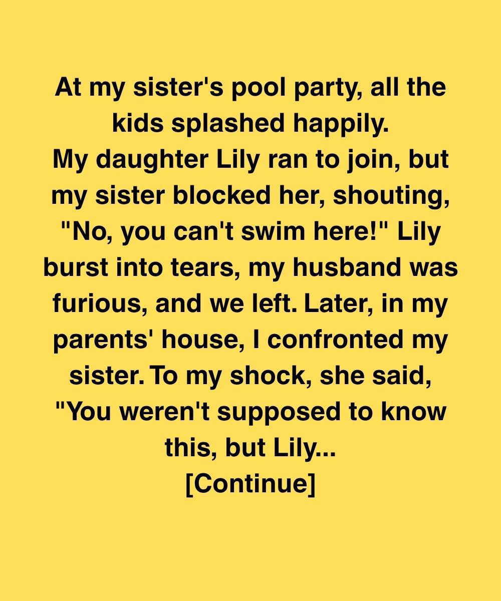 My daughter Lily ran to join, but my sister blocked her, shouting, “No, you can’t swim here!” Lily burst into tears, my husband was furious, and we left. Later, in my parents’ house, I confronted my sister. To my shock, she said, “You weren’t supposed to know this, but Lily… she’s not just your daughter.”