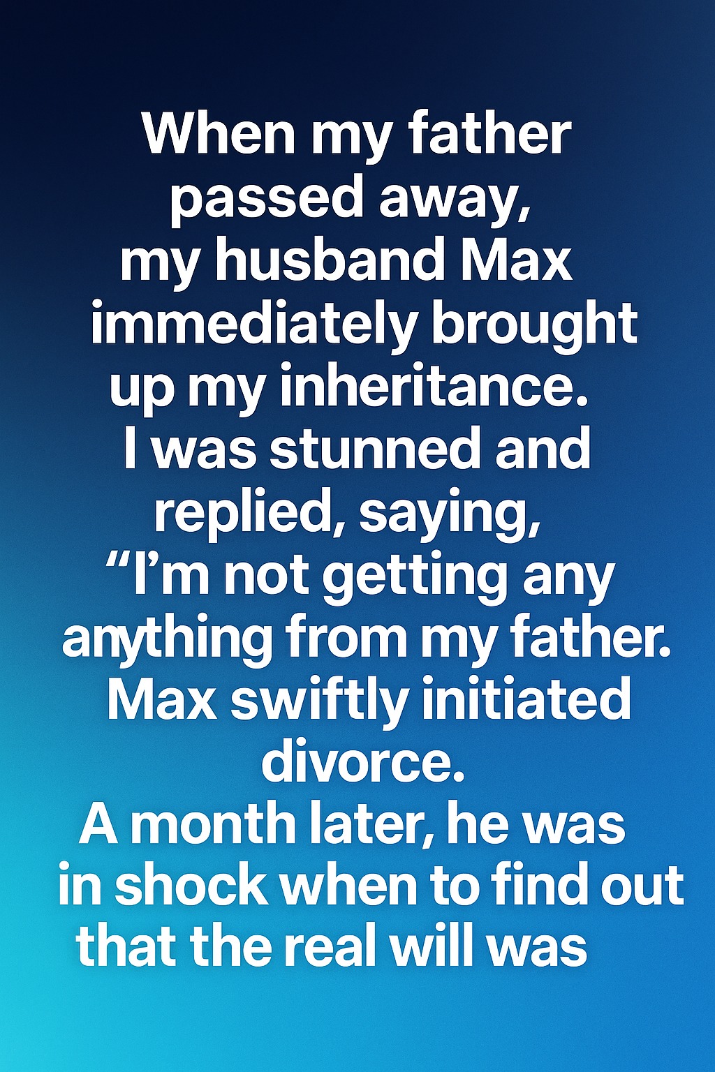 When my father peacefully left this world, my heart felt heavier than ever before. During those quiet days, my husband Max surprised me by bringing up the topic of inheritance. His timing unsettled me, but I tried to brush it aside. When I told him I expected nothing, he grew distant. I didn’t realize that moment would change everything.