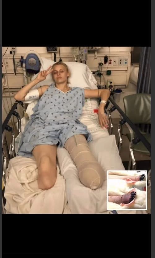 Lauren slipped into a coma for more than a week. Her organs began to fail. She suffered two heart attacks. When she finally woke, doctors told her they had to amputate her right leg to save her life. She was 24.