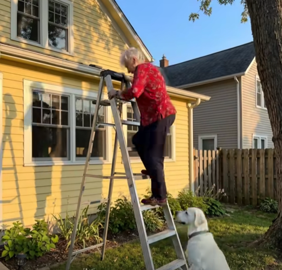 I WAS ON THE LADDER TRIMMING BRANCHES WHEN MY DOG BIT MY PANT LEG AND PULLED ME DOWN—THEN I REALIZED WHY HE HAD ACTED SO STRANGELY. I remember that day clearly. The morning sky was heavy and gray, and although it looked like rain could fall at any moment, I was determined to finish trimming the old apple tree. The ladder was already leaning against the trunk, and I didn’t want to postpone the task any longer. I had barely climbed a few steps when I felt a sudden tug at my pants. Startled, I turned around and saw my dog trying desperately to climb the ladder behind me. His paws slipped on the metal rungs, his nails scraped loudly, and his eyes—wide, focused, almost pleading—never left mine. I tried to laugh it off, telling him to get down and stop fooling around, but he only became more persistent. His teeth gripped my pant leg again, pulling so sharply that I nearly lost my balance.