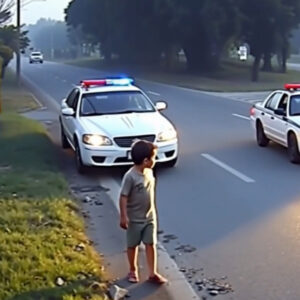 A police officer noticed a little boy—no older than three—wandering by himself along the edge