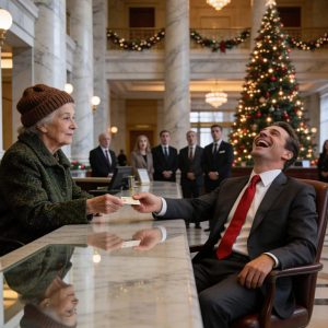 Ninety-year-old Evelyn Carter walked into the grand lobby of First National Bank with a simple goal: to check her balance. Despite her steady voice, her worn coat…