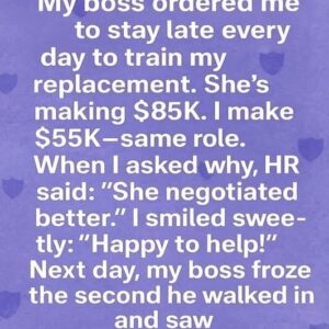 I suspected something was wrong the moment my boss asked me to stay late all week to train the woman hired to take over my job. The…